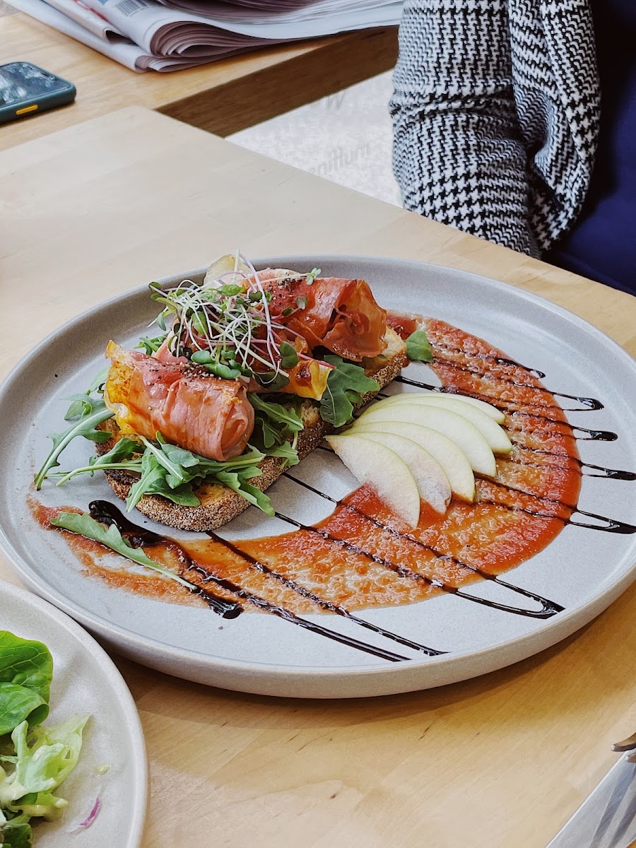 One of the best cafe I encounter in Hampton!The interior is airy and full with sunlight. Had a pleasant and friendly chat with the staff which recommends me their specialty coffee blend that they roast. The coffee is nice and smooth, but the muffin is the bomb! We have a chance as well to try their brunch menu as well which is the avocado bagels and prosciutto poppers. Love the bagels, it was perfectly toasted, the fried egg oozed through but the romesco sauce is the one to die for! The prosciutto poppers comes with a lot - (A LOT) of surprise. The prosciutto bacon is super crispy but when you bit it through there are a soft cheese and suddenly the texture changing. It’s a dish that is full with texture and flavours. All in all really happy with the visit here and definitely will be back again for those popper and the muffins.